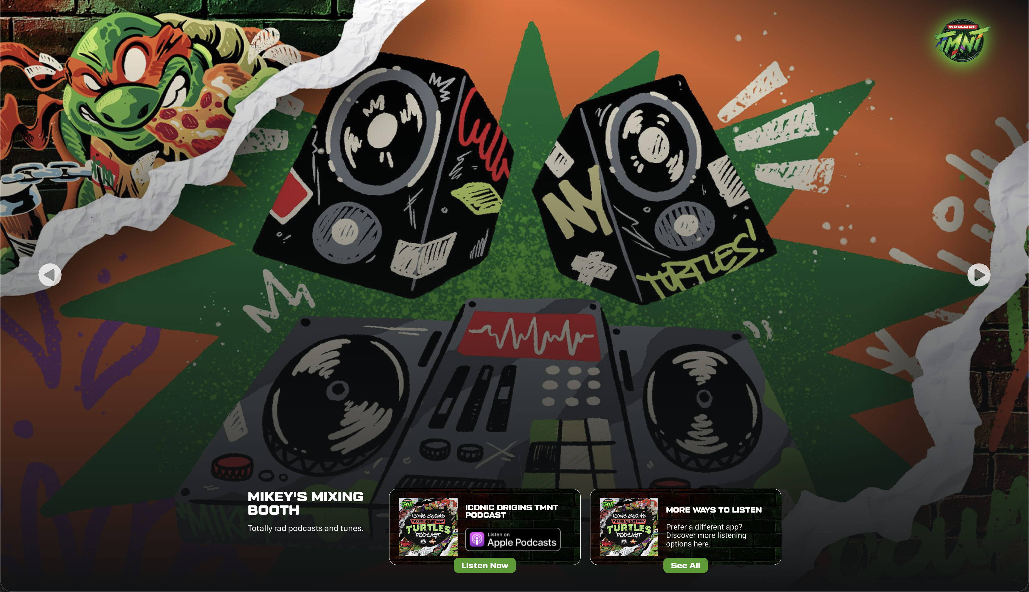 We created World of TMNT, a modular digital hub designed as a collection of immersive rooms fans could explore and return to over time. The platform unified every era of TMNT through a single visual system, featured exclusive content and fan art, and hid easter eggs that unlocked the new cinematic short. To launch at NYCC, we paired the hub with NYC wheatpaste posters created with street artist Jappy Agoncillo and partnered with Olympic skateboarder Zion Wright to authentically connect the rebrand to contemporary youth culture.The Impact
